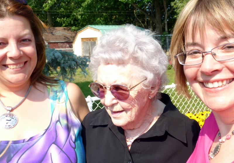 Here is a picture of my sister, my mom, the birthday girl, my aunt and myself at this afternoon's festivities:
